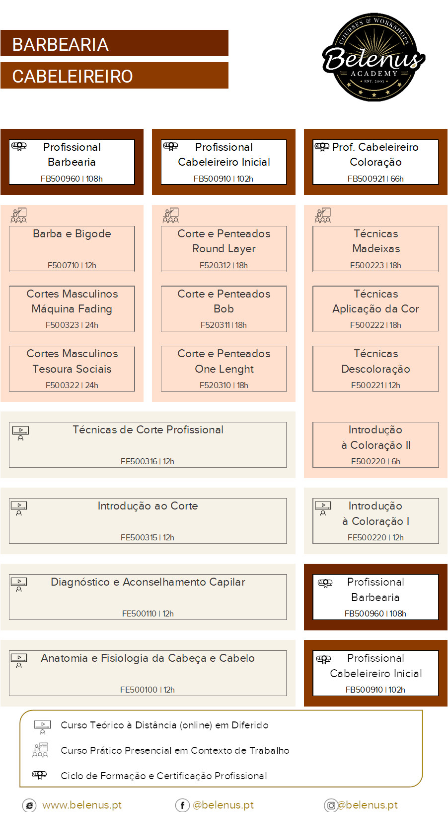 disponibilidade. - Nos cursos de cabeleireiro, barbearia e cosmética, as turmas funcionam com um mínimo